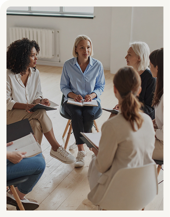 Between Sessions: Private group chat for ongoing support, resource sharing, and celebration of wins